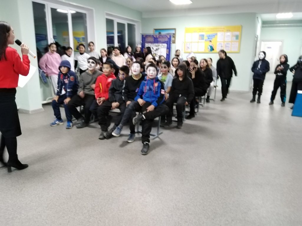 В первый день осенних каникул 28 октября 2022 года в школе состоялась шумная костюмированная вечеринка в честь праздника «Хэллоуин». Руководитель этого праздника была Манчыы А.М В нашей школе проводит учитель английского языка Манчыы А.М. Хэллоуин среди школьников.