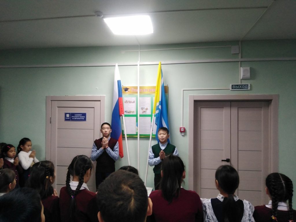 7 ноября 2 четверть началась с торжественной линейки, посвящённой церемонии поднятия государственных флагов Российской Федерации и Республики Тыва.